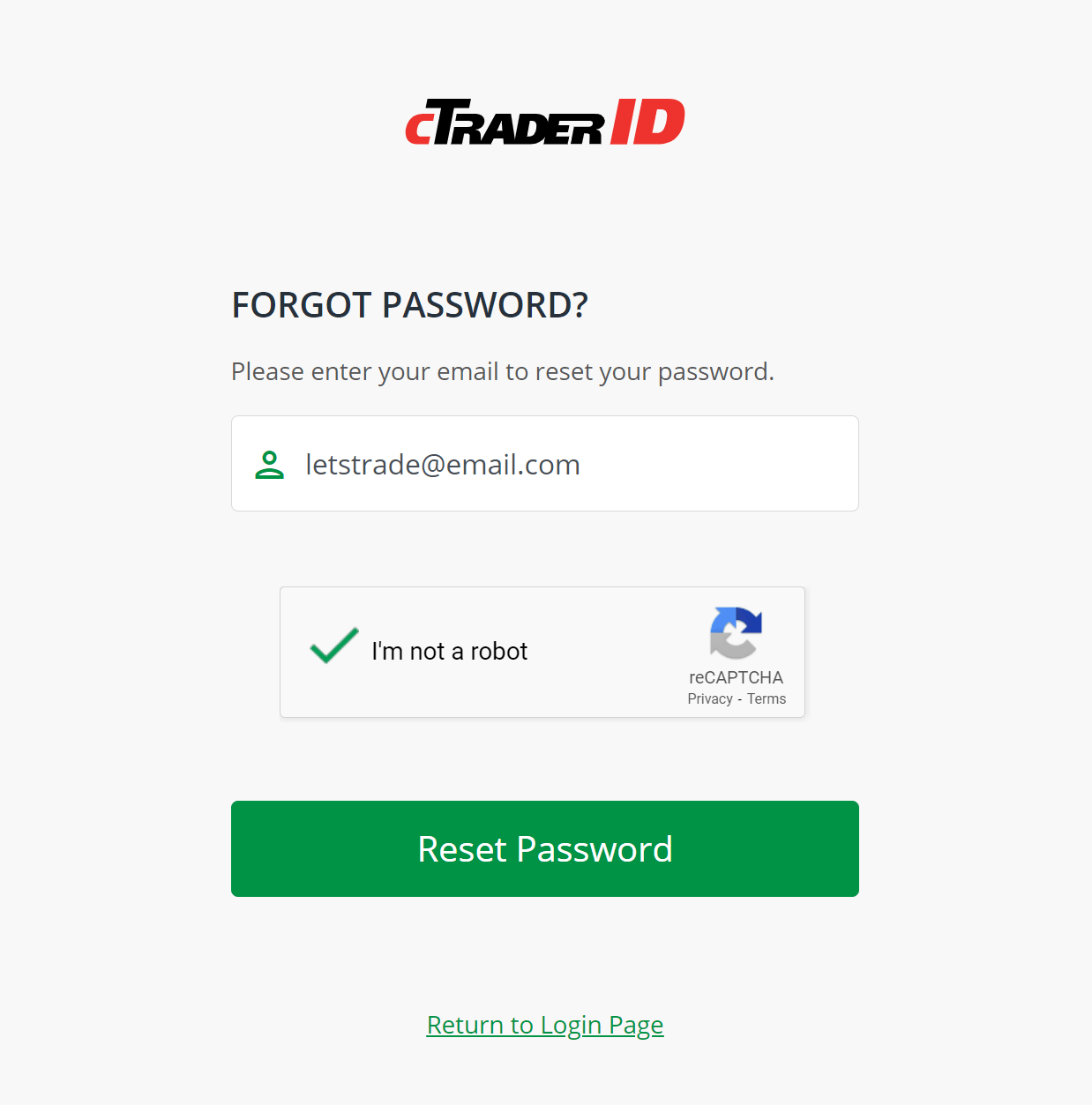 بازنشانی رمز عبور به شما این امکان را میدهد تا بدون از دست دادن اطلاعات حسابها و محیط کاری، دوباره وارد cTrader شوید.