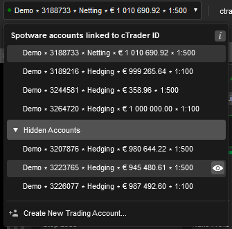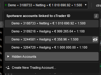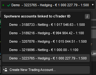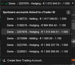 cTrader از هر دو نوع حساب واقعی (Live) و دمو (Demo) پشتیبانی میکند. در این بخش، نحوهٔ ایجاد حسابهای جدید، جابجایی بین حسابها و انواع مختلف حسابها توضیح داده میشود.